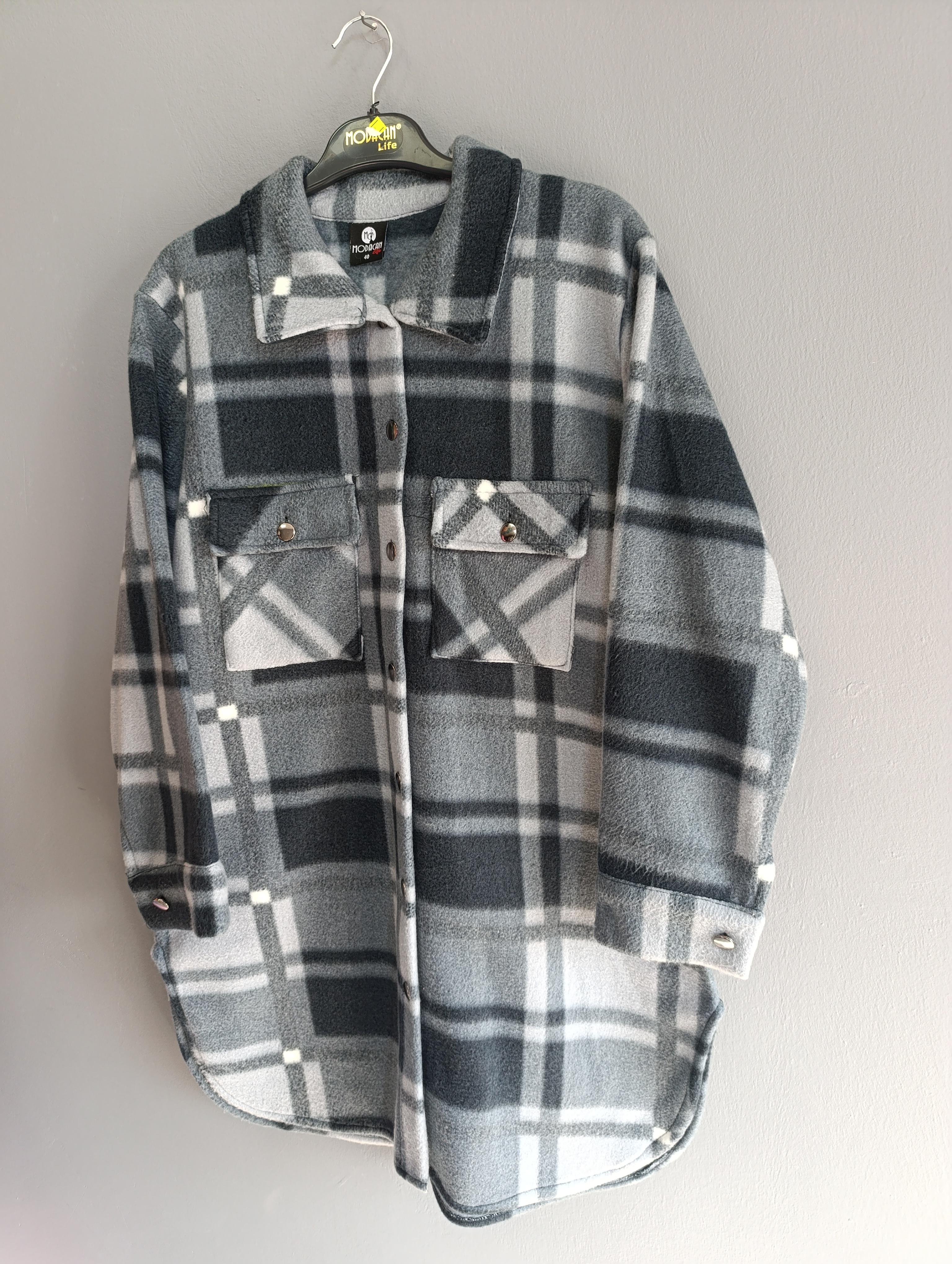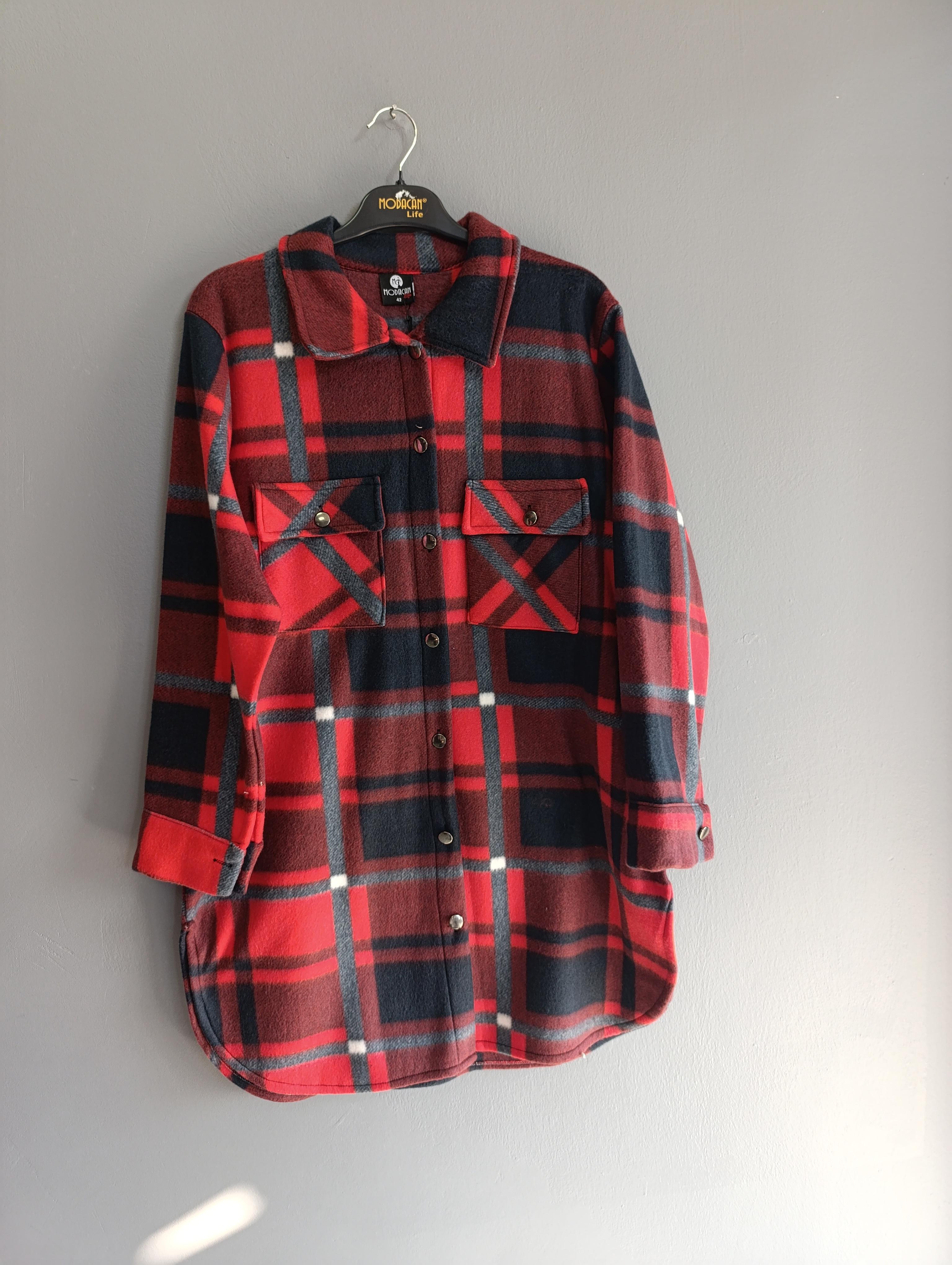 bayan tunik tarzı polar gömlek, cepdetaylı